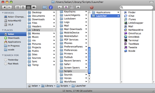 folder called “Launcher” in ~/Library/Scripts/ (see screenshot below), and put