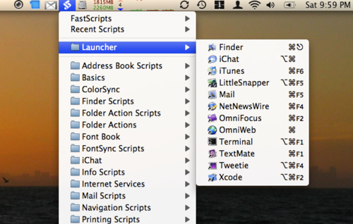 Here is a screenshot of my FastScripts menu, showing the list of shortcuts that I use. This is also, not coincidentally, the list of my most-used apps.
