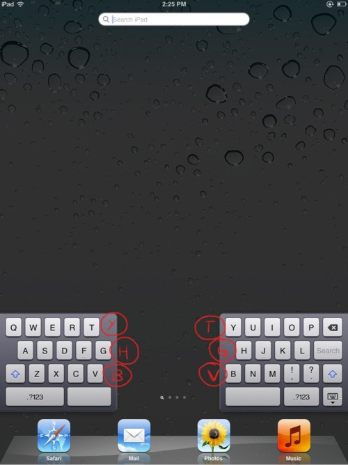 The iPad’s split keyboard has phantom buttons. If you’re used to typing Y with your left hand, you can.